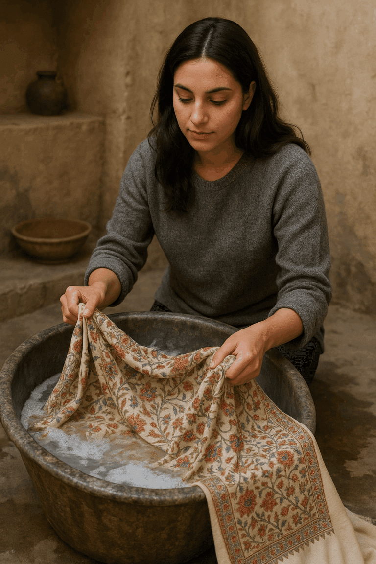 Washing your pashmina with love and patience will keep it looking elegant for years. If you’re ever unsure, it’s best to seek professional dry cleaning—especially for embroidered or Kani-woven pieces.